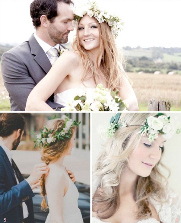 Desde que Kate Moss las pusiera de moda al utilizarlas como principal complemento en el peinado de sus damas de honor, las coronas de flores no dejan de protagonizar las bodas de esta temporada, aunque ya eran tendencia mucho antes como must de moda y hemos podido verlas a lo largo del año en las pasarelas más internacionales. Podéis combinarlas con prácticamente cualquier tipo de flor, tanto natural como artificial, preferiblemente para bodas rústicas o al aire libre, aunque la tendencia permite todo tipo de utilidades y variedades, rosas, peonías, coronas de helechos, paniculata, anémonas, eso sí mejor consultad antes a vuestra florista si queréis llevar una corona de flores naturales ya que os podrá recomendar mucho mejor cuáles son las más idóneas para la estación del año en la que las luciréis. En cuanto al estilo, todo vale, se llevan finitas de aire hippy o más gruesas e incluso cubriendo gran parte del cabello, creando un look más bohemio. Estas últimas son quizás las más actuales, he de reconocer que al principio no me entusiasmaban demasiado pero ahora, a base de verlas en diferentes reportajes, me han acabado gustando, creo que dan un aire onírico y muy femenino a las novias. Ya lo sabéis, si vuestra intención es lucir algo natural sobre el cabello y estáis hartas de velos y tocados, la mejor opción es una corona de flores.