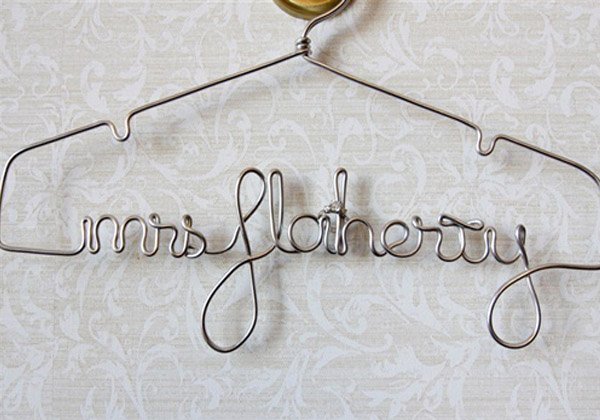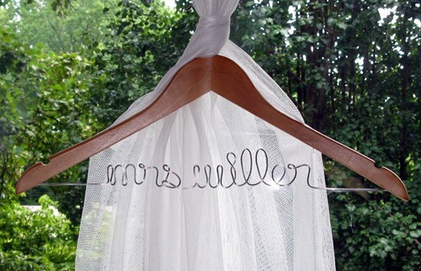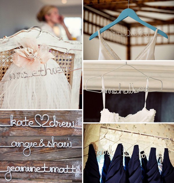 Me gusta mucho la clásica imagen del vestido de novia colgado en una puerta o en una ventana antes de que la novia se deslice por él rumbo al altar. Es una imagen preciosa para tener en cuenta a la hora del reportaje fotográfico antes de la boda. Normalmente se suele utilizar perchas de madera, para que el vestido no se deforme, pero a mí me gustan las perchas personalizadas. Creo que son un detalle precioso que además puede guardarse de recuerdo y que incluso la novia puede regalar a sus damas de honor. Me parece que únicamente caben unos 14 caracteres por percha pero son suficientes para escribir el nombre de la novia, de los futuros esposos o alguna palabra que haga alusión a ese momento especial como ‘love’ o ‘bride’ e incluso podéis ‘dibujar’ una imagen de amor como un corazón. Os dejo con varios ejemplos de perchas personalizadas para que veáis cómo queda. Como siempre, espero que os gusten.