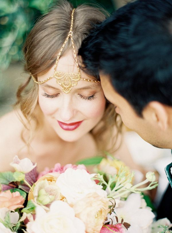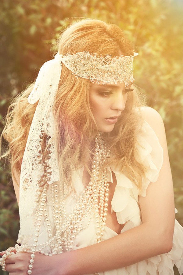 El estilo Boho Chic va ganando adeptos por momentos y es que son muchas las novias que se sienten identificadas con esta mezcla entre lo bohemio y lo hippy y con un tipo de boda al aire libre, muy natural y nada convencional. Cada vez más los novios tienden a organizar bodas frescas y desenfadadas, huyendo de los estereotipos tradicionales y decantándose hacia un tipo de ceremonia donde prevalezca más la esencia que la forma aunque no por ello se dejan de lado elementos tan importantes como la decoración, al contrario, quizás la puesta en escena esté incluso más estudiada y trabajada que en una boda al uso. A pesar de que la corriente Boho Chic marca un estilo bien definido, también ofrece opciones diferentes según la personalidad y el estilo de cada novia, incluso aunque la boda no sea 100% Boho sí que lo puede ser el vestido o un complemento concreto, como el tocado. En el post de hoy he recopilado distintos modelos de tocado que llevan novias de aire Boho, pero si os fijáis el efecto que causa cada una de ellas es diferente. Hay incluso una, la primera, que tiende más incluso hacia una línea más glamourosa y sofisticada por lo que se demuestra que, en contra de lo que algunos opinen, el estilo Boho también puede tener su glamour si se lo propone.