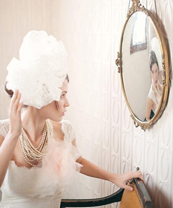 El tocado ha sufrido importantes variaciones a lo largo de la historia, desde su uso más moral que estético en la Edad Media, cuando el tocado se utilizaba para cubrir los cabellos como signo de pudor hasta la época en la que empezó a sufrir sus mayores cambios, el siglo XX. A partir de aquí el tocado se reinventa y se recurre cada vez más a nuevos materiales y diseños, pero siempre con la mirada puesta en el pasado. En la actualidad el tocado está más de moda que nunca y muy presente en las bodas, no sólo adornando las cabezas de las invitadas sino también las de las novias. Y aunque particularmente no creo que el tocado acabe siendo el sustituto del velo, sí que soy de la opinión de que va ganando adeptos y muchas novias se decantan por lucirlo. Si estáis pensando en poneros un tocado el día de vuestra boda hoy os traigo una selección con un aire muy ‘chic’ y femenino: en forma de casquete, con velo o redecilla, de terciopelo, algunos incluso algo atrevidos pero todos especialmente fascinantes. Espero que os gusten.