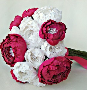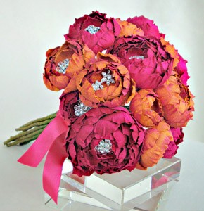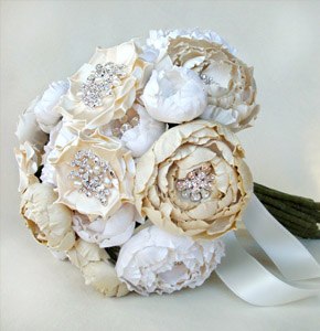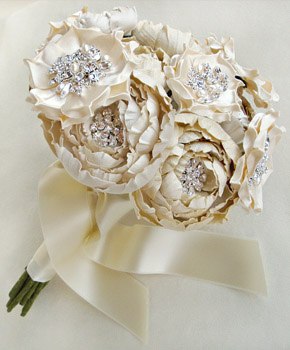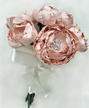 Una de las cosas que seguramente a más de una novia le hubiera gustado conservar intacto es su ramo de novia, pero desgraciadamente las flores naturales se marchitan y, como mucho, podemos conservarlo colgándolo unos días boca abajo y esperando a que se sequen las flores. Para que eso no os ocurra hoy os traigo una idea que me ha parecido original, diferente y muy bonita: un bouquet con flores de seda confeccionadas a mano. Los podéis encontrar blancos, en tonos rosados, crema, marfil e incluso de colores, con incrustaciones de pedrería, cristales o con auténticas perlas de agua dulce. El arreglo se puede personalizar en la forma y los colores que se deseen, a partir de una variedad de tejidos de seda y a gusto de cada cliente. Una buena idea para conservar vuestro ramo de novia toda la vida…