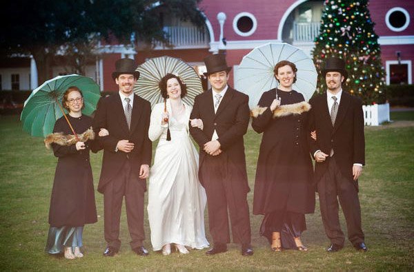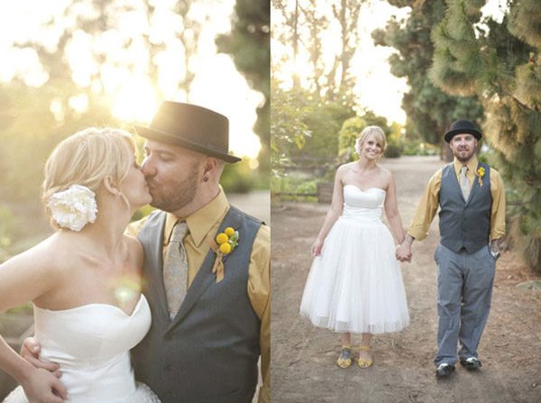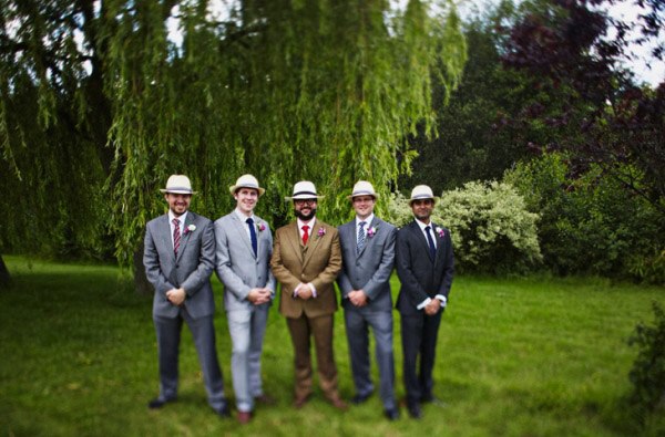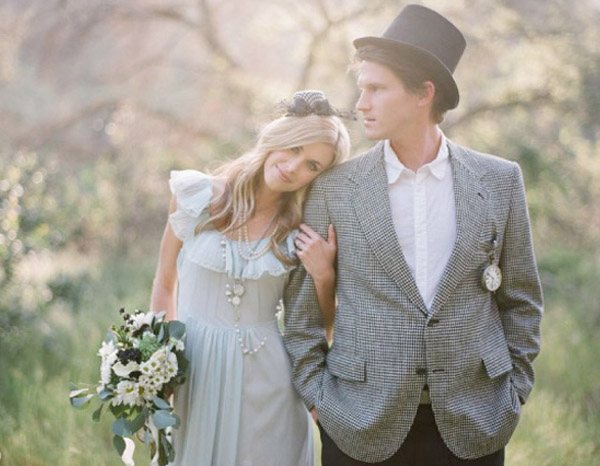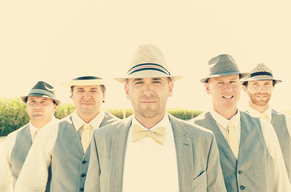 Hace días que no dedicamos un post a la parte masculina de la pareja y ya va siendo hora de hacerlo. Siempre me ha parecido curioso ver la diferente relación que existe en distintas ciudades españolas con un complemento tan especial como el sombrero. Hay lugares, como Vitoria o San Sebastián donde podría decirse que es casi imprescindible su uso, en cambio hay otras ciudades donde prácticamente nadie se atreve a lucirlo. Factores climatológicos aparte, creo que el uso del sombrero da un porte distinguido a quien lo lleva, no sé, igual os pareceré antigua o clásica, pero a mí me encantan los hombres con sombrero. Es una debilidad que tengo, lo reconozco. Por eso el día de mi boda no podía faltar ese complemento tan especial, así que mi futuro marido lució un modelo Panamá a juego con el que llevaban los pequeños pajes (nuestros hijos). Él combinó la cinta del sombrero con la corbata (yo hubiera preferido una pajarita pero él no se veía) y con el pañuelo de bolsillo de la solapa, pero si lo preferís y queréis un resultado más desenfado, podéis incluso hacer un contraste de colores o de telas. En una boda dan mucho juego y hay muchos modelos distintos para elegir el más apropiado según el tipo de ceremonia que vayáis a celebrar. Los hay clásicos, tipo bombín o chistera; tradicionales que nunca pasan de moda, como los barrieros o más desenfadados como los Panamá o los borsalinos. Además son útiles tanto en invierno para protegerse del frío como en verano para combatir el calor, en el primer caso podéis elegir un modelo fabricado con un tejido más cálido como la lana y para el segundo uno de paja o de algodón. Espero que con las fotografías que ilustran este post los indecisos hayáis acabado de decidiros. Si yo fuera chico lo tendría clarísimo, el día de mi boda luciría un borsalino.