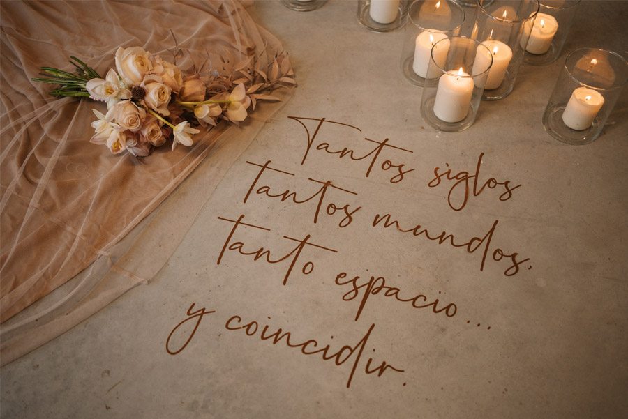 En apenas unas horas acaba el mes de enero y dará comienzo el mes más rosa del año, febrero. Hoy en el blog, le damos la bienvenida con una sesión de inspiración llena de sensualidad y romanticismo, de belleza y de sentimientos. Os presentamos a Alma, una novia sencilla y delicada, de belleza serena y elegante. Una novia con universo propio, rodeada de un diseño floral que transmite dulzura y vanguardia, donde el juego de tonalidades en rosas empolvados y la simplicidad de texturas consiguen el equilibrio perfecto de la elegancia. El romanticismo se traslada también al look de la novia, que luce un precioso vestido diseñado por Susana Hidalgo en el que tejidos como el tul, las transparencias y los bordados visten a una novia con personalidad. El toque delicado lo aportan las joyas de Martina Dorta, un trabajo artesanal y exclusivo donde cada una de sus piezas relata una historia única, confeccionadas utilizando joyas antiguas, gemas, metales y piezas de orfebrería. Alma completa su estilismo con una melena suelta peinada con suaves ondas y un maquillaje natural que resalta su feminidad. La mesa, decorada en cristal y detalles en oro rosa, con mantelería de lino y sillas estilo Versalles es el marco perfecto de un editorial íntimo, delicado y tremendamente inspirador.