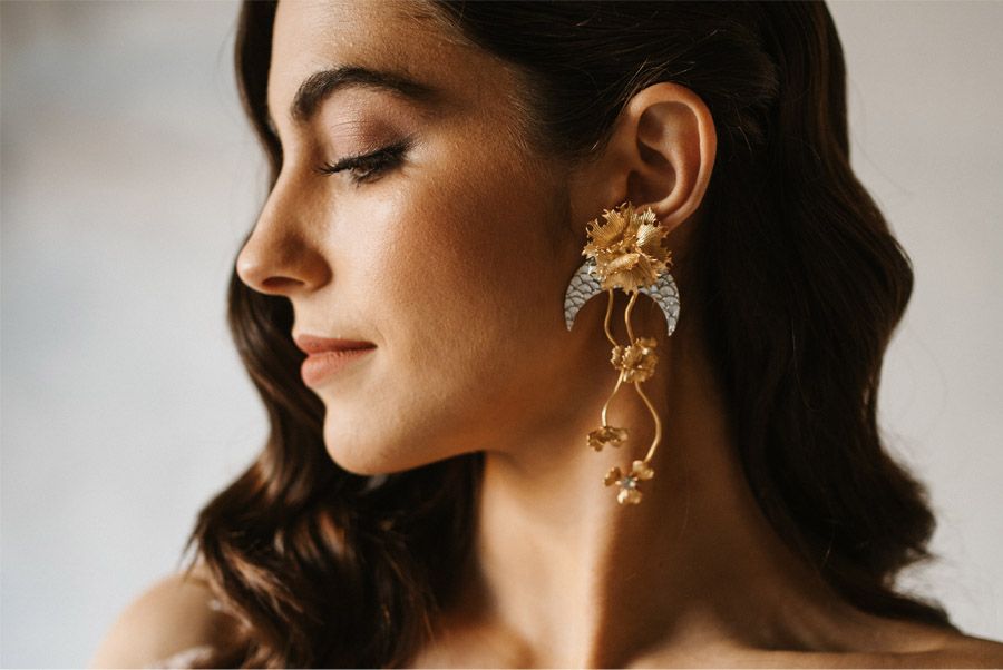 Planning y Decoración Floral: La Boheme Estilismo Floral / Fotografía: Alberto Casa Cruz / Vestido novia: Susana Hidalgo Alta Costura / Pendientes: Martina Dorta / Modelo: Carmen Serrano / Papelería creativa: La Kuba Studio / Mobiliario y menaje: Noe Events