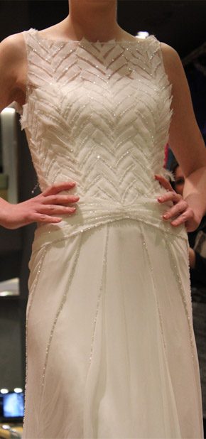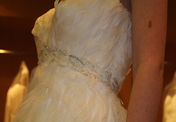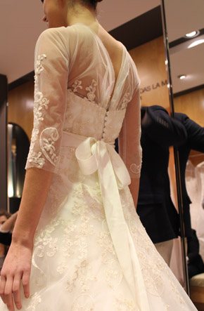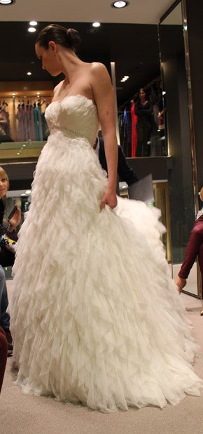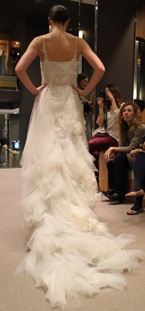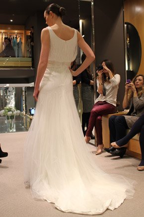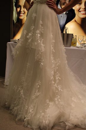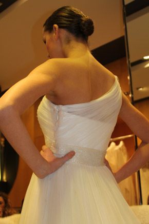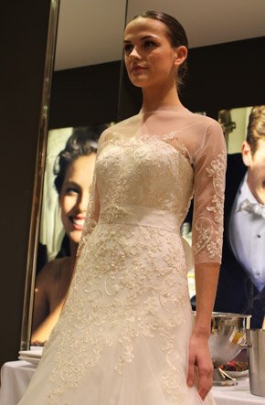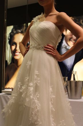El pasado martes fue un día doblemente especial, primero porque fue San Valentín, el día por excelencia de ese pequeño querubín que apunta a ciegas y sin discreción con su ballesta cuando menos te lo esperas y, segundo porque tuve el placer de ser una de las bloggers invitadas a la presentación en exclusiva del avance de la colección 2013 de Pronovias. La cita fue en el barco insignia de la firma, la tienda de Paseo de Gracia en Barcelona y a ella asistimos un grupo reducido de bloggers de moda, estilo de vida y boda. En la invitación previa al evento nos anunciaban que sería un estilista el que nos hablaría de los detalles de la nueva colección, pero cuál fue nuestra sorpresa, cuando al llegar al espacio nos encontramos con el propio diseñador Manuel Mota. Fue él el que personalmente nos recibió y se convirtió en el anfitrión perfecto de una velada especial. He de decir que a pesar de haber coincidido con él en alguna ocasión, no tenía el placer de conocerlo personalmente y me pareció una persona encantadora, muy detallista y un gran profesional. La nueva colección resalta una vez más la figura femenina, estilizando los talles y dando prioridad a los escotes, asimétricos en ocasiones, y probando nuevas y desenfadadas formas como las mangas con corte a tijera. Destacan especialmente los tules y las superposiciones de distintos tejidos mezclados con encajes y pudimos comprobar que continúa en auge el cinturón-joya y el efecto ‘tatuaje’, aunque pierde protagonismo el escote palabra de honor. Una de las sorpresas fueron los dobles vestidos, modelos superpuestos con faldas transparentes tipo velo que pueden desprenderse tras la ceremonia para dar paso a un nuevo vestido que permita una mayor comodidad y movilidad a la hora del baile. Fueron 10 los modelos escogidos para la presentación pero nos quedamos con ganas de más, tras el avance el diseñador pudo contestar a todas nuestras preguntas y brindar por el éxito de la nueva colección, que seguro lo tendrá.