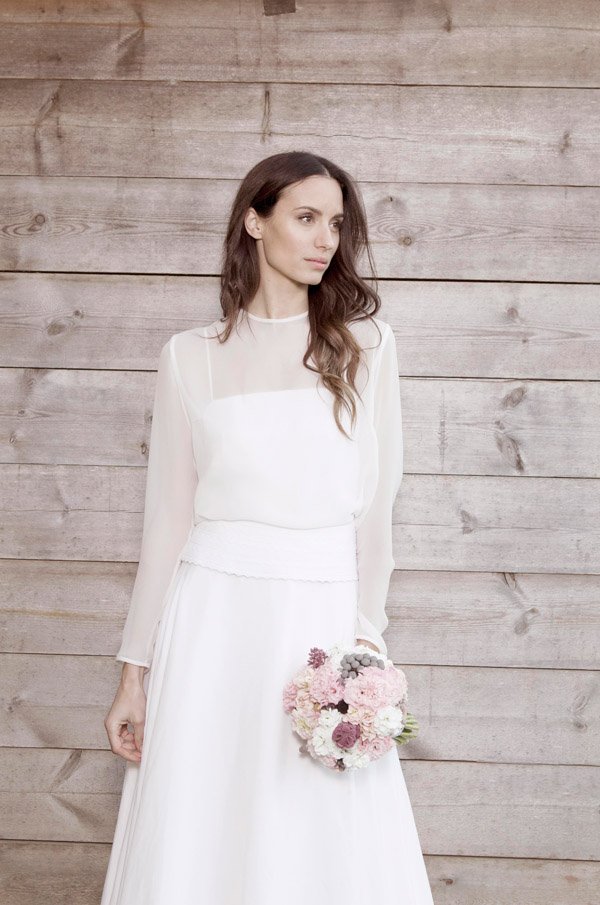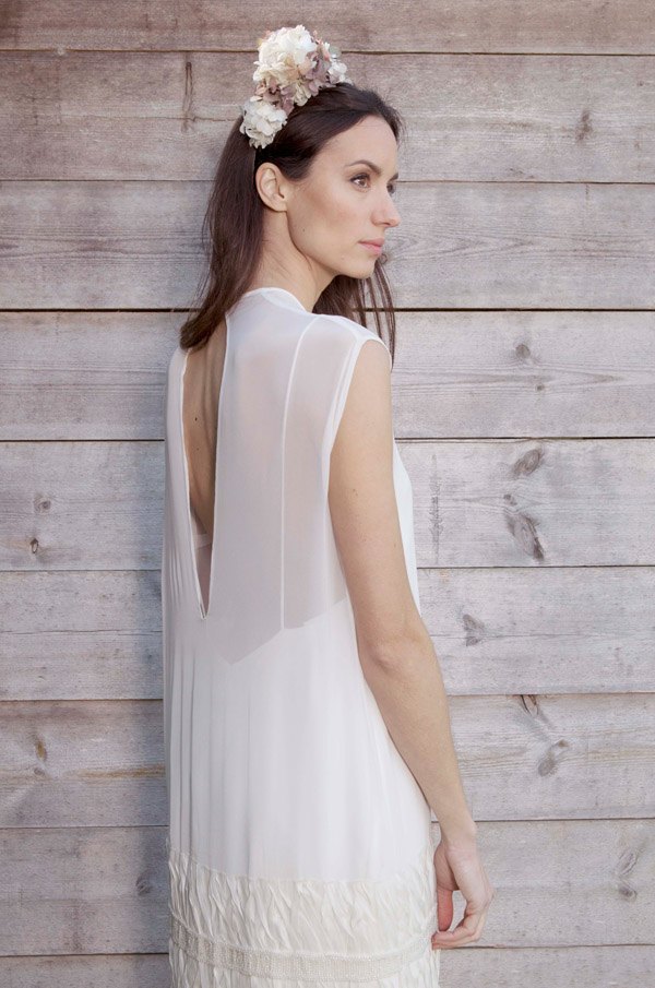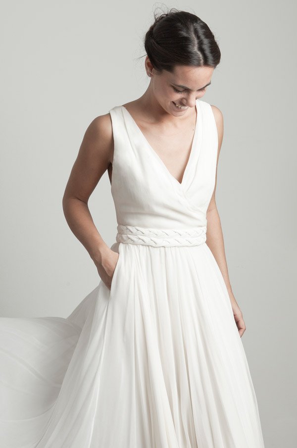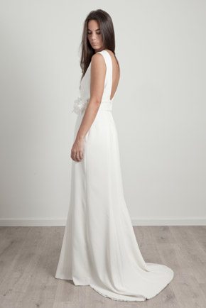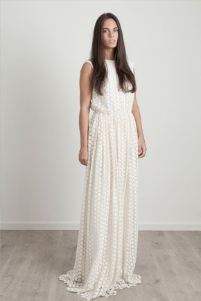 Hoy retomamos el blog después de las vacaciones y me gustaría empezar presentando el trabajo de una joven diseñadora a la que conocí hace unos meses y que me encantó por su sencillez y naturalidad. Cuando, días después, pude ver sus diseños y más tarde su primera colección para novias comprobé una vez más que el trabajo de un diseñador es el reflejo de su personalidad y que los vestidos, cuando hay sentimientos de por medio, hablan por sí solos. Marta Martí se inició en el mundo nupcial cuando diseñó su propio traje de novia hace cuatro años, a partir de ahí empezó a darle vueltas a la idea de crear su propia colección, una colección que bajo el título de First Date, transmite la ilusión de una primera cita, un momento tan mágico como sus diseños, románticos y muy versátiles, pensados para destacar la silueta femenina y vestir a todo tipo de novias. Confeccionados con delicados materiales como el georgette o el crépe de seda natural que combinan a la perfección con tejidos como el guipur en forma de pequeñas margaritas y el crépe de algodón. Vestidos vaporosos, con caída, espaldas al aire, conjuntos de dos piezas, todos ellos mezclados con elegantes detalles como piezas antiguas de valencienne o pequeños abalorios trabajados a mano. Una colección en la que destaca el mono y el vestido corto como imprescindibles, basada en una visión de la novia muy particular e inspirada en diseñadores como Balenciaga, Valentino, YSL, Balmain, Giambattista Valli o McQueen. Si lo que buscáis es naturalidad y romanticismo, estoy segura de que esta ‘primera cita’ con los diseños de Marta Martí no os dejará indiferentes.