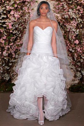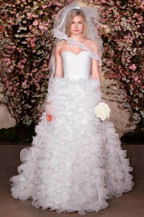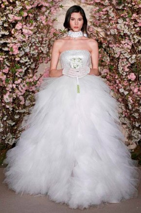 Estamos en plena celebración de actos y eventos relacionados con el mundo nupcial y el referente por excelencia fuera de nuestras fronteras ha sido la New York Bridal Week. Os iré presentando cada semana las colecciones que más han llamado mi atención y, para empezar, os dejo con la nueva colección para novias de Óscar de la Renta. Para el 2012, el diseñador dominicano ha presentado una colección sorprendente, con diseños muy creativos y románticos bordados y ha seguido fiel a los detalles de su costura tradicional dando el toque de referencia con largos velos y grandes sombreros. Destaca la diversidad de tejidos como el tul, suntuosas sedas bordadas, los lazos, asimetrías y los tops combinados con faldas y rematados con apliques y detalles florales e introduce los tonos pastel, como el rosa o el azul. Una colección detallista que no os dejará indiferentes.