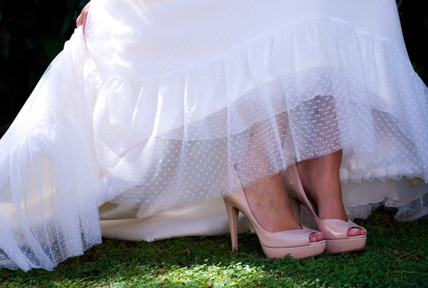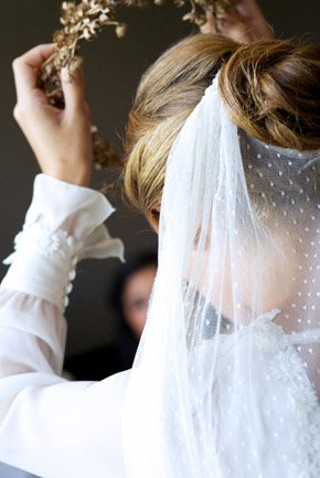 Hoy quiero hablaros de tejidos, concretamente del que a mí al menos me parece el más romántico de todos, el plumeti. Seguro que todas lo conocéis pero por si todavía hay alguien que no sabe qué es os diré que es ese tipo de tela, normalmente de tul, que lleva bordados unos pequeños topitos sobre ella. Es un tejido muy utilizado en vestidos o complementos de novia, aunque también se usa mucho para ropa de bebé. Su estilo clásico y femenino lo hace perfecto para novias de aire romántico que pueden elegir su uso bien para la totalidad de su estilismo como únicamente para algunos elementos concretos. Así encontramos cuellos de plumeti, medias, mitones, velos e incluso zapatos. Aunque se considera un tejido clásico, las necesidades y los gustos estéticos actuales han permitido que la tela evolucione adaptándose a las nuevas modas, normalmente aumentando de tamaño y de grosor los topos, lo que da un aire mucho más moderno y actual al vestido. Pero si lo que buscáis es un estilo más vintage, podéis jugar con la combinación de plumeti con bordados y encajes. Sea cual sea vuestro gusto estético lo que seguro que transmitiréis si incorporáis el plumeti en vuestro estilismo nupcial es una imagen romántica, natural y, sobre todo, muy femenina. Un tejido a tener en cuenta.