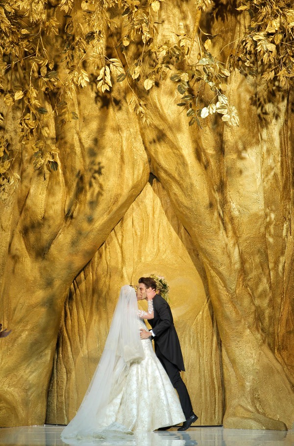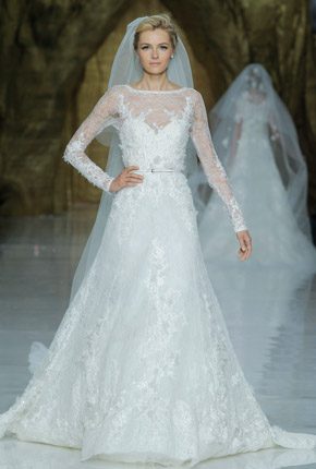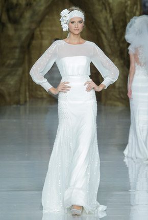 Caía la tarde sobre Barcelona y desde las alturas del MNAC, con las fuentes de Montjuic a sus pies, empezaban a llegar invitados de todas las partes del mundo. Un total de 1.800 personas fueron los elegidos para disfrutar, un año más, del desfile más esperado de la Barcelona Bridal Week. Tras atravesar una nube de periodistas y caras famosas, una impresionante Sala Oval albergaba una larga pasarela surgida de un enorme árbol dorado de 20 metros de altura. First Love, el primer amor, ese que dicen que nunca se olvida, que siempre se recuerda, que te hace volver quizás a tu infancia, puede que a tu adolescencia, pero que siempre, siempre, te recibe con una sonrisa con sólo pensar en él, fue el leit motiv de la presentación. Esa misma mañana, en el transcurso de un exquisito brunch servido en el restaurante del Museo, un grupo de bloggers de moda y novias, nacionales e internacionales, ya habíamos podido ver algunos de los vestidos que unas horas más tarde lucirían las modelos pero nada comparado con verlos en directo y en movimiento bajo una escenografía única protagonizada por dos niños que viven su primer amor bajo las ramas de un árbol, culminando años más tarde con una ceremonia nupcial. Durante el desfile se presentaron las Colecciones 2014 de Pronovias, Atelier Pronovias y Elie by Elie Saab. La primera, Pronovias 2014, sorprende este año con una amplia colección para todo tipo de novias que va desde trajes cortos de corte moderno hasta amplias y voluminosas faldas más clásicas con escotes palabra de honor que conviven a la perfección con otros modelos de escote asimétrico y cortes de sirena. De la colección Atelier Pronovias destaca la riqueza de sus tejidos, con sedas y encaje francés, además de otros más nobles como el chantilly, la garza o el tafetán. Especial protagonismo cobran las espaldas cubiertas con sinuosas transparencias, encajes o pedrería. Para finalizar, la colección Elie by Elie Saab presenta un estilo muy romántico y glamouroso, con faldas largas y cintas en torno al busto con bordados de perlas y pailletes. Cabe destacar la importancia del tocado y de las diademas de flores, parte muy importante en la nueva colección, que seguirán estando presentes a lo largo de la próxima temporada. El desfile destacó por un casting de lujo con modelos de la talla de Irina Shayk, Valentina Zeliaeva y Josephine Skriver. Y como broche final el romántico beso entre el modelo Jon Kortajarena y Anne Vyalistina, que levantó a todos los presentes de sus asientos haciendo vibrar toda la Sala entre aplausos y vítores. Una vez finalizado el desfile pudimos disfrutar un año más de la fiesta privada que ofreció Pronovias a sus invitados en otro lugar emblemático de la ciudad, el Palauet Albéniz.