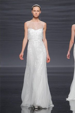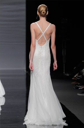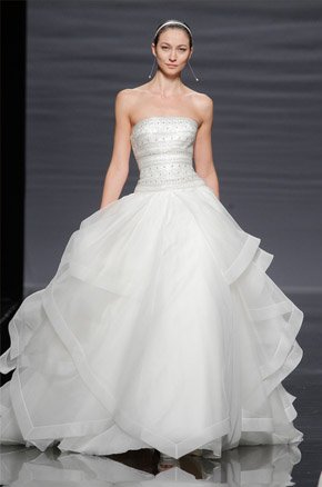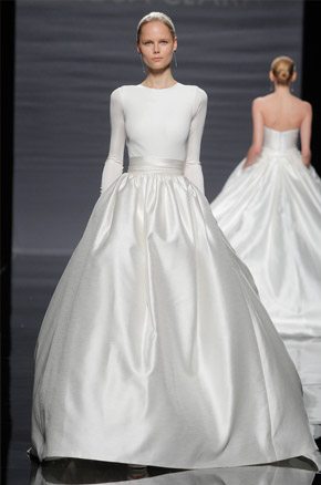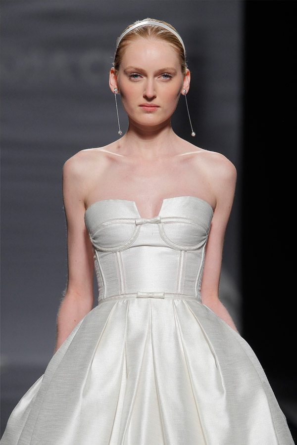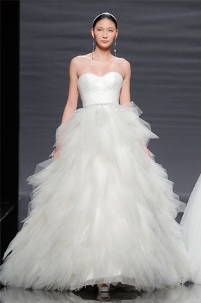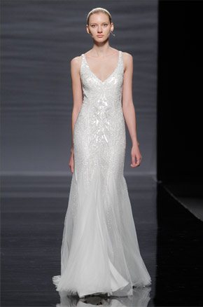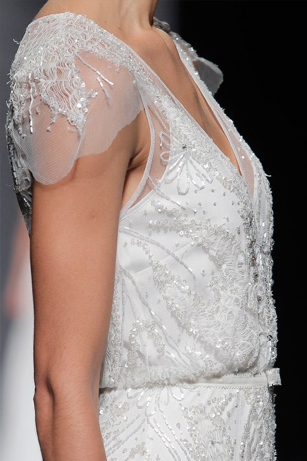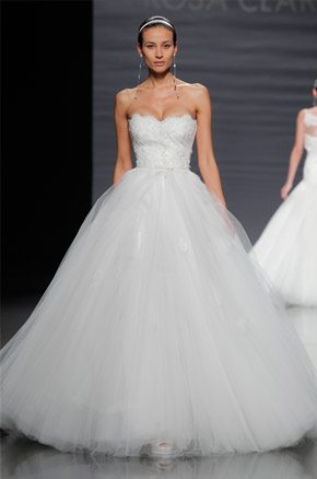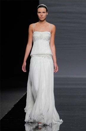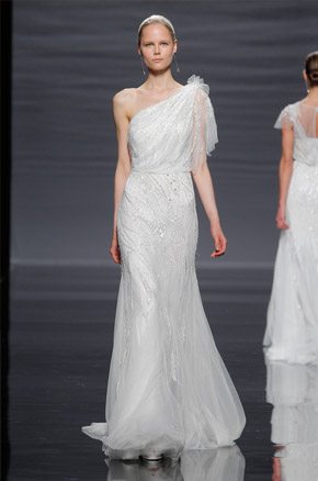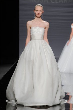 La semana pasada arrancaba la Barcelona Bridal Week con el desfile de la diseñadora Rosa Clará, del que ya avanzamos algunas imágenes de los diseños que pudimos ver en primicia el día anterior en la convocatoria para prensa y bloggers protagonizada por la modelo rusa Dasha Kapustina, actual novia del piloto español Fernando Alonso. El desfile de la nueva colección fue un anticipo de lo que veríamos los próximos días sobre la pasarela y se estructuró en tres líneas muy diferenciadas en las que las espaldas tuvieron un marcado protagonismo, siendo el punto de partida de una novia en ocasiones romántica, otras veces sexy pero siempre sensual y femenina. Los brocados y pedrerías suelen triunfar en épocas de crisis y en esta ocasión no podía ser distinto, como reconoció la propia diseñadora. La primera línea, con reminiscencias de los años 20, destacó por un importante volumen en faldas y minimalismo en algunos cuerpos, combinando tejidos nobles como el mikado de seda o el otomán con detalles de alta costura como lazos, vainicas o bordados de flores y pedrería. Seguidamente pudimos disfrutar de una segunda línea en la que predominaron los tules y los detalles de fantasía con aplicaciones y bordados de encaje y pedrería. Para finalizar ya con una tercera línea de inspiración puramente romántica con tules transparentes y tejidos más sutiles y delicados que dieron lugar a sofisticadas creaciones que se transformaban cuando la modelo se daba la vuelta, dejando al descubierto sorprendentes e inesperados escotes. Un año más, Rosa Clará sorprendió con su dominio de la aguja y su sensibilidad creativa en un desfile donde el culto a la belleza femenina volvió a estar presente entre tules y bordados.