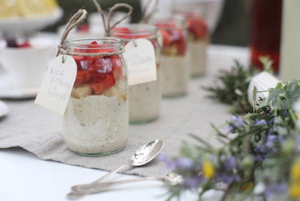 Siempre hablamos de la boda y de sus preparativos, pero nos olvidamos de que todo ese esfuerzo y dedicación de los novios debería tener su recompensa, ¿no creéis? Y si además es una recompensa inmediata, pues mucho mejor. Sois varias las que me habéis preguntado sobre qué regalar a esos novios afortunados que ya lo tienen todo, casa, ajuar, coche e incluso algún ahorro (aunque esa palabra pueda sonar un poco rara hoy día). Y se me ha ocurrido una idea que puede estar muy bien. Sorprender a los novios con un brunch al aire libre para cuando amanezcan en su primera mañana de casados. Pero os lo debéis trabajar un poco, no vale con encargar un catering y olvidarse del tema, lo bonito es que al levantarse se encuentren con algo que les sorprenda de verdad, que les deje con la boca abierta, algo muy parecido a las imágenes que ilustran este post. Imaginaos una mesa con exquisiteces tales como pan crujiente recién horneado, dulces confituras, café con frutos del bosque o pudding de arroz con fresas y plátano… Os lo propongo como idea de regalo original, pero pueden incluso organizarlo los mismos novios como ‘homenaje’ a todos los nervios pasados con la pre-boda y la boda en sí. Espero que os guste la idea.