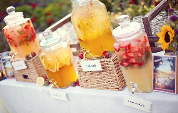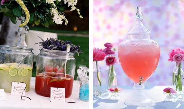 Cuando aprieta el calor no hay nada mejor que la bebida bien fresquita y en una boda de verano esta no debería faltar. Muchas veces en las barras de bebidas para el aperitivo no se tiene muy en cuenta la presentación y se sirven refrescos o zumos directamente de la botella de origen. Pero, como siempre os digo, no hay que dejar ningún detalle al azar y en este caso una barra de bebidas frescas se puede convertir en un elemento decorativo precioso además de práctico y refrescante. Los dispensadores de bebidas pueden dar ese toque diferente al aperitivo y se pueden emplear para servir zumos, batidos e incluso cócteles de diferentes colores y sabores. Podéis personalizarlos sirviendo bebidas que contengan los colores de vuestra boda, de fresa si el protagonista es el rosa o de limón si lo es el amarillo. También podéis adornarlos en su interior con rodajas de naranja o limón y, sobre todo, con muchos cubitos de hielo para que la bebida se mantenga siempre a una óptima temperatura. Os dejo con una selección de diferentes modelos para que vayáis pensando en el que más os guste.