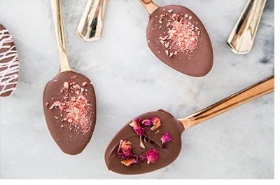 3. Cuando el chocolate esté completamente derretido, sumergir las cucharas en el chocolate y colocarlas sobre el papel de horno para que se enfríen.