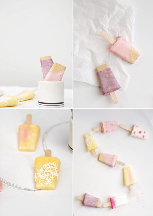 Estos días de buen tiempo me han hecho recordar un imprescindible en las bodas de verano, los helados. Ya os he hablado de ellos en alguna ocasión pero hoy os traigo una propuesta para que hagáis vosotras mismas vuestros propios helados, pero no unos helados cualquiera, la idea es hacer unos realmente exquisitos, especiales para gourmets. Es sencillísimo y además de buenos quedan estéticamente tan bonitos que no sólo van a gustar, también decorarán. Podéis utilizar esta idea tanto para mayores como para pequeños, para estos últimos podéis hacerlos en un tamaño menor si queréis. Únicamente vais a necesitar palitos de helado de madera, yogurt y decoración comestible (estrellas, purpurina, etc.). No es necesario que hagáis vosotras mismas el yogurt ya que hay marcas en el mercado realmente delicatessen así que lo primero que tenéis que hacer es elegir vuestra marca preferida y luego escoger una o varias paletas de colores combinando distintos sabores de la misma gama. Yo por ejemplo, ahora que están tan de moda los tonos pastel jugaría con distintas tonalidades en rosa mezclando sabores de fresa, frutas del bosque, ciruela, etc. También podéis combinarlas con tonos en mint, el color de la temporada, con sabores a menta o albahaca. El proceso es el mismo que para hacer un helado normal, tenéis que poner en un molde o recipiente el yogurt e introducir el palito del helado, meterlo en el congelador y sacarlo cuando veáis que está congelado. Una vez tenemos la base, sólo nos queda decorarla con estrellitas de colores, purpurina comestible, corazones o cualquier otro topping que os resulte divertido. ¿A que es sencillo? Pues ya tenéis otra idea para vuestra boda de verano o para cualquier otra ocasión. Creo que lo probaré en mi próximo cumpleaños.