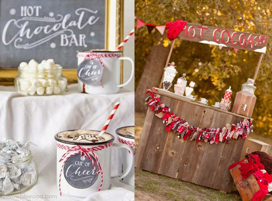 Estos días en los que el frío ya empieza a notarse, sobre todo a primera hora de la mañana y a última de la tarde, apetece algo calentito que nos haga entrar en calor y si además nos aporta un poco de energía pues mucho mejor. Uno de los inconvenientes (o ventajas, según cómo se mire) de las bodas de invierno, es precisamente el frío. A mucha gente las bajas temperaturas les paralizan, no les apetece tanto salir de casa y en cuanto anochece sólo piensan en su sofá, su mantita y un buen chocolate caliente. Y la verdad es que es un plan perfecto, por eso si estáis pensando en organizar una boda en invierno os propongo que para la recena montéis una barra libre de chocolate caliente o lo que es lo mismo un Hot Chocolate Bar. Podéis decorarla siguiendo la temática y estética de la boda, darle un aire rústico o más sofisticado, colocarla sobre un mueble antiguo, un carrito con ruedas o sobre varias cajas de madera. Es importante prestar atención a la cristalería porque es lo que le dará el toque especial al conjunto, podéis colocar vasos altos, copas o mugs y acompañando al chocolate también podéis incluir otros complementos como marshmallows o nubes de algodón, nata batida, azúcar en polvo, menta, canela, barquillos, galletas de mantequilla, virutas de chocolate, frutos secos y un sinfín de variedades que harán más apetecible si cabe la recena. Y si sois verdaderos amantes del chocolate mi recomendación es que combinéis diferentes modalidades, chocolate negro, chocolate con leche e incluso chocolate blanco. Y después de esto creo que me voy directa a la cocina a prepararme uno bien calentito, os apetece?
