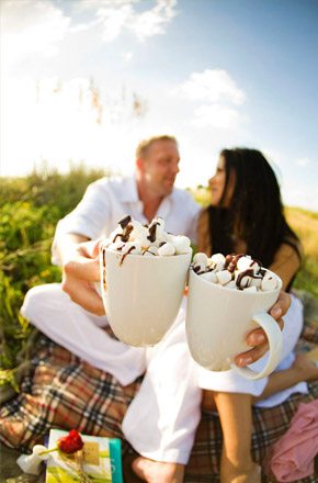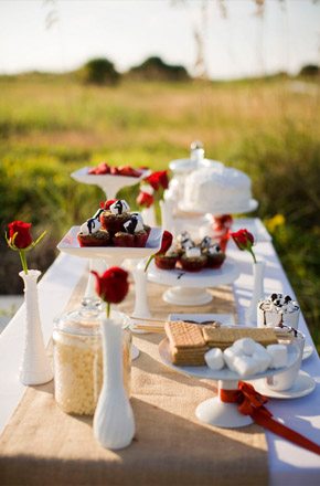 Es frecuente y habitual realizar una prueba de menú antes de la boda para decidir lo que se va a servir durante el almuerzo o la cena y comprobar la calidad del mismo. Suele ayudar a los novios a decidirse por un plato u otro, aunque a veces es más difícil de lo que parece. Pero, ¿habéis asistido alguna vez a una prueba de postres? Cuando lo dulce se convierte en una prioridad para los novios, casi mayor que el resto de platos, se hace necesaria una ‘exclusiva’ y concienzuda prueba de postres. Os dejo con una muy divertida que se planteó como un pic-nic en el campo, veréis que no falta detalle en la mesa: hay galletas, nubes de algodón, chocolate caliente, torta, surtido de bombones, pastelitos e incluso pastel de merengue. No hace falta deciros cómo acabaron los novios después de la prueba, es fácil de imaginar ¿verdad?