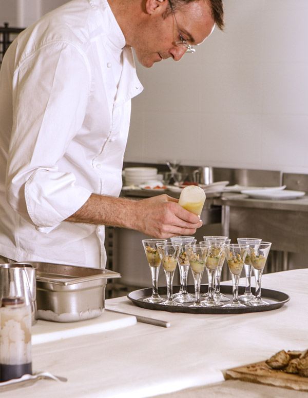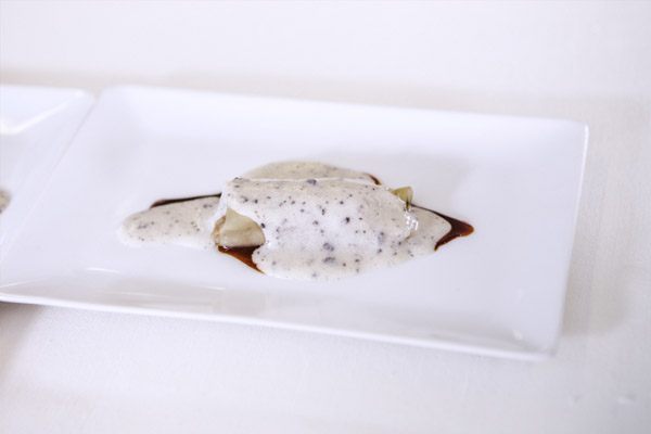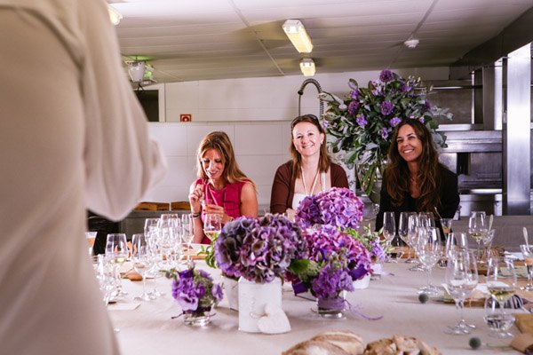 He de reconocer que no soy una cocinillas precisamente pero me encanta la buena mesa, disfruto como una enana en un restaurante, en un chiringuito de playa o en casa de mi abuela. Igual me gusta la cocina tradicional que probar nuevos platos, experimentar con distintos sabores y descubrir mezclas sorprendentes y, si tuviera algo más de tiempo, seguro que hasta acabaría por ‘engancharme’ a cocinar. Por eso, cuando recibí la llamada de Gloria Carulla, propietaria de Sibaris Catering para comentarme que si me gustaría asistir junto a un grupo reducido de bloggers y wedding planners a un Taller Gastronómico para celebrar sus 20 años de andadura profesional, no lo dudé un instante. Y menos tratándose de Sibaris! A Gloria la conozco desde hace años, cuando trabajaba en una agencia de comunicación y organización de eventos y su empresa Sibaris, era de nuestros caterings preferidos. No me gustaría que pensaseis que esto tiene toda la pinta de convertirse en un post promocional o similar, por suerte de momento únicamente escribimos de lo que nos gusta, pero de Gloria y de Josep María, que además de socio y marido, es el excelente chef de Sibaris, sólo puedo hablar maravillas. Tanto el trato como el servicio y la calidad de su cocina están a la altura de una boda o evento de 10! La cita fue en uno de sus espacios más emblemáticos de Barcelona La Torre de los Leones, un edificio señorial que conserva las características de las grandes masías catalanas. Allí nos esperaba su equipo, con Josep Maria al frente de la cocina. Todo estaba cuidado al detalle, desde la decoración del espacio y de la mesa, hasta el detallito de bienvenida con el menú impreso a juego con una pequeña libretita del mismo diseño con nuestra inicial en la portada, hasta la presentación de los platos, a cual más exquisito. Fue un lujo para los sentidos y, sobre todo para el paladar, poder disfrutar y compartir una velada relajada en la que brindamos, como mínimo, por otros veinte años más de éxito. Y si os animáis a contar con Sibaris en vuestra boda, no dejéis de probar su versión del Drácula de toda la vida con crema inglesa, caviar de Coca-Cola, sorbete de fresón y petazetas!! Sencillamente ESPECTACULAR!!