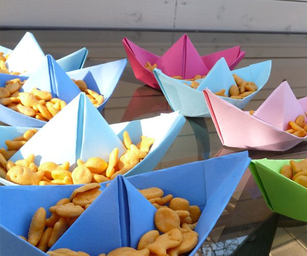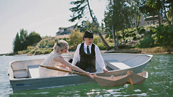 Ahora que estamos en plena temporada de bodas de verano os traigo una idea decorativa muy sencilla pero que a mí me encanta, se trata de los barquitos de papel. Siempre me ha parecido increíble todo lo que se puede hacer con un trozo de papel y uno de los objetos que más me gustan son los barquitos. Ahora se han puesto muy de moda e incluso hay velas, lámparas o jarrones con forma de barco de papel pero a mí los que me gustan son los de toda la vida, los auténticos hechos a mano. Además no hace falta que seáis maestros de la papiroflexia para que os salgan bien. Podéis utilizarlos para crear guirnaldas con distintos colores o estampados que decoren una parte de la boda o un rincón concreto. También son ideales como sitting de mesa, con el nombre de cada invitado escrito en uno de los laterales o como protagonistas de un centro de mesa de aire marino. Otra idea divertida es hacerlos con dibujos o láminas infantiles y ponerlos como decoración de la mesa de los niños o como recipientes para sus chuches, seguro que les encanta y luego siempre pueden acabar entreteniéndose jugando con ellos. La idea de hacer invitaciones con forma de barquito también la encuentro de lo más original para bodas que sigan esa temática o el hecho de utilizarlos como caketopper en el pastel nupcial o para decorar unos cupcakes. Y algunos novios, como podréis ver en las fotografías, los incorporan también en su reportaje fotográfico. Queda precioso un paseo en barco al atardecer rodeados de barquitos de papel, ¿no os parece?