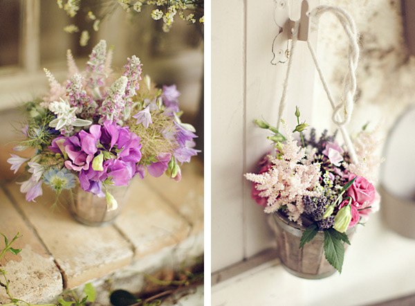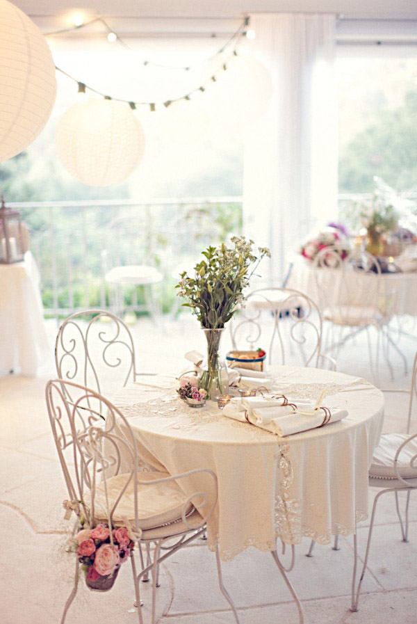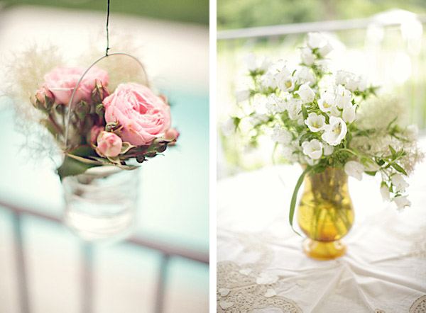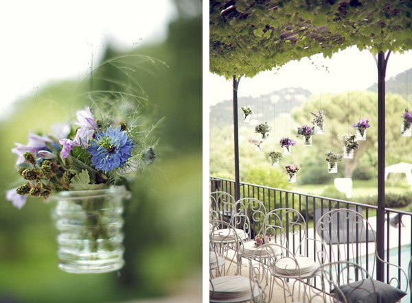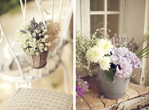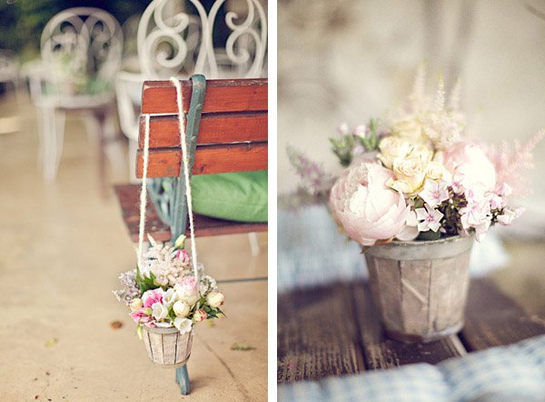 Uno de los elementos fundamentales en la decoración de una boda son las flores. Es cierto que decorar con flores suele aumentar considerablemente el presupuesto de una boda pero lucen tanto que merece la pena recortar en otros aspectos quizás menos visuales y no tan agradecidos. Además, las flores aportan una doble función porque aparte de decorar ambientan el espacio. ¿No os ha pasado alguna vez entrar en algún recinto decorado con flores, cerrar los ojos y aspirar profundamente? Es una sensación inmensa de naturaleza, de frescura, que te traslada mentalmente a un gran jardín en primavera. Recuerdo que en casa de mi abuela siempre había flores, le encantaban, disfrutaba con ellas. En verano, cuando la visitábamos durante el mes de agosto, su jardín siempre lucía con el colorido de gladiolos, rosas, margaritas o de mis queridas peonías. Tenía la costumbre de reutilizar cualquier recipiente como improvisado jarrón, por lo que era normal entrar en su jardín y encontrarte con una caja de frutas de madera a modo de parterre o con varias latas metálicas de melocotones con plantas aromáticas en su interior. Todo valía. La decoración de hoy me ha recordado esa afición de mi abuela, salvando las distancias claro, ya que en este caso se trata de una ornamentación floral muy pensada y tremendamente elegante, todo un diseño creado para una boda muy especial. Hay pequeños cubos de madera con flores por todas partes, en las sillas de la ceremonia, en los centros de mesa, colgados de las ramas de los árboles, en la Candy bar, en los buffets, decorando una ventana, cualquier espacio es susceptible de albergar unas bonitas flores y más si son como las de este reportaje. Espero que os guste tanto como a mí.