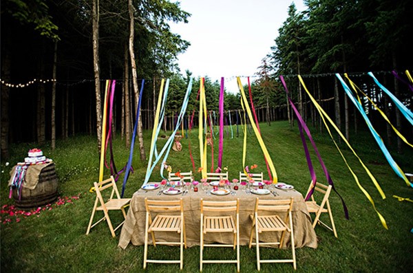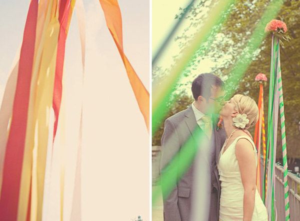 Cuando hablamos de cintas normalmente lo primero que se nos viene a la cabeza es el típico lazo que empleamos para envolver un regalo o las típicas cintas para recoger el pelo de las niñas. Pero, ¿en qué pensáis cuando se habla de cintas y además de bodas? Seguro que algunas de vosotras os habéis quedado en blanco pero otras habréis imaginado escenas como las que hoy os presento en este post. La decoración de una boda utilizando cintas de colores puede resultar de lo más divertido y creativo, además de económico y muy artesano. Las posibilidades son tantas como lo que dé de sí vuestra imaginación, pero si necesitáis ayuda, en el post de hoy podéis encontrarla. Podéis decorar una pared lisa con cortinas de cintas de colores, la parte trasera de las sillas del banquete, el mantel o incluso el pastel de bodas. También puede ser un complemento ideal del ramo de novia, de los zapatos o del cojín de los anillos. Veréis que es una manera sencilla y original de dar un toque diferente a vuestra boda. Espero que os guste.