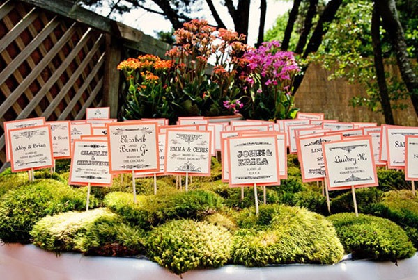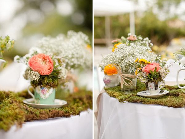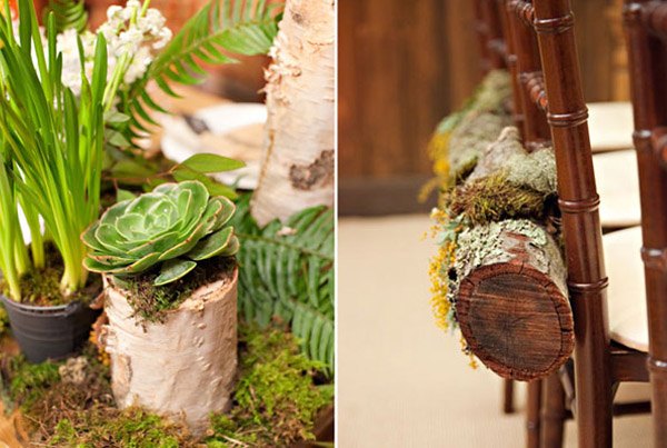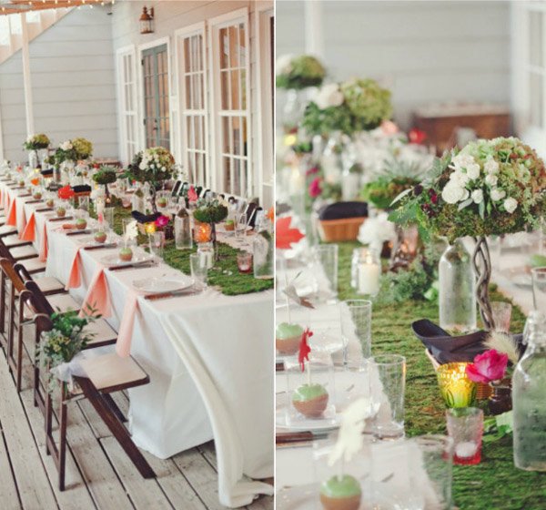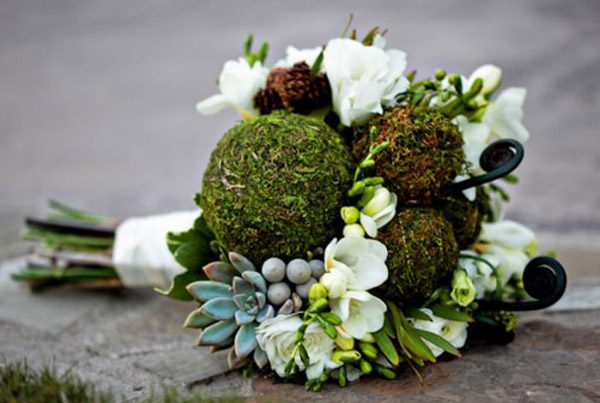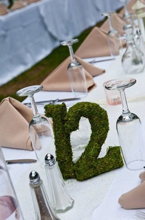 El pasado fin de semana pasaron muchas cosas que en breve os explicaré, una de ellas fue la que me dio la idea del post de hoy. Estuvimos en la Masía Ribas, en una merienda de bloggers donde entre otras cosas maravillosas había una decoración floral de las que quita el hipo. Me quedé un buen rato observando todos y cada uno de los detalles que había, sobre todo los centros de mesa, cada uno diferente pero todos con un aire otoñal con colores entre rojos, ocres y verdes, que hacía más acogedor el ambiente, si cabe. Uno de los elementos utilizados en la decoración era el musgo. No pude evitar acordarme de mi infancia, cuando por estas fechas iba con mi padre a la montaña a buscarlo para hacer juntos el pesebre de casa. Todavía hoy mi hermano sigue con esa tradición familiar. Me gustó mucho la idea y buscando por la red encontré auténticas maravillas para decorar con musgo una boda en otoño o invierno. Y no sólo para utilizarlo en la decoración general o en los centros de mesa, podéis incluso atreveros a numerar las mesas con números vegetales o a escribir una frase o mensaje para vuestros invitados sobre alguna pared, sí como lo oís, escritura con musgo. Uno de los detalles que más me ha gustado ha sido el ramo de novia, confeccionado con bolas de musgo, es ideal para una novia otoñal. También podéis decorar vuestro portalianzas o incluso el ojal de la chaqueta del novio. Además el musgo es un elemento vegetal que aguanta mucho sin echarse a perder, por lo que no hay problema de que se marchite ni se seque durante la boda. ¡Espero que os guste!
