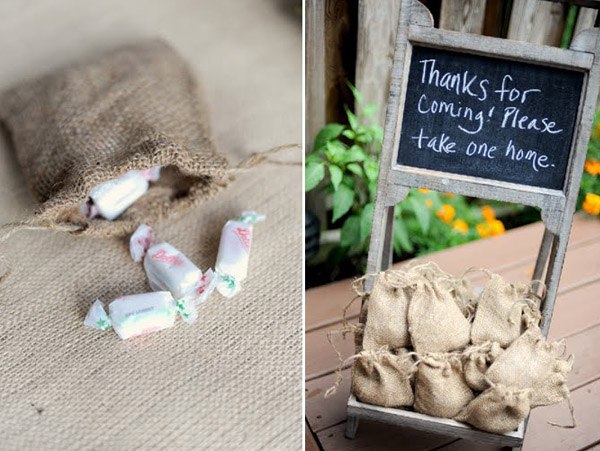 Para las que estáis pensando en organizar una boda rústica, os recomiendo un elemento ornamental que os puede dar mucho juego sin tener que invertir mucho dinero. Se trata de la tela de saco. Su textura y su tonalidad ofrece múltiples opciones a la hora de combinarla con otros elementos decorativos, llegando incluso a transformar un espacio por completo. En las fotografías podéis ver diferentes alternativas y aplicaciones, la podéis usar tanto en la invitación de vuestra boda como en el bouquet floral de la novia, confeccionando una mantelería e incluso decorando las sillas del banquete. También la podéis aplicar en los centros de mesa o en detalles decorativos generales o más personalizados, como los regalos para los invitados. Sólo necesitáis un poco de inspiración y metros de tela para que vuestra boda ofrezca una imagen rústica y natural.