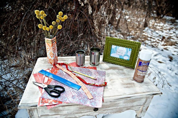1.- Elegir la lata a cubrir y medir una tira de papel que cubra toda la lata.