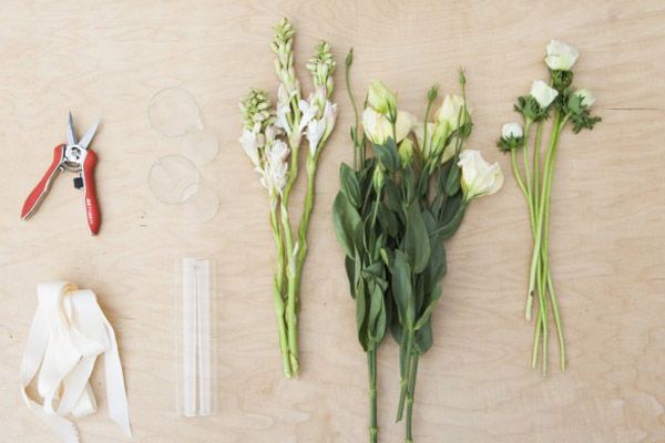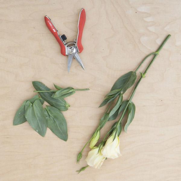 4. Recortar los tallos de las diferentes piezas florales a la medida que más os guste. Es recomendable trabajar con dos o tres tipos de flores diferentes y combinarlas entre ellas para que no queden todos los jarrones iguales.