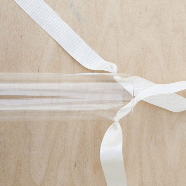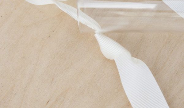 3. Hacer un nudo en los dos lados de la cinta, sujetándola bien al jarrón, intentando dejar la misma longitud de cinta sobrante en cada lado.