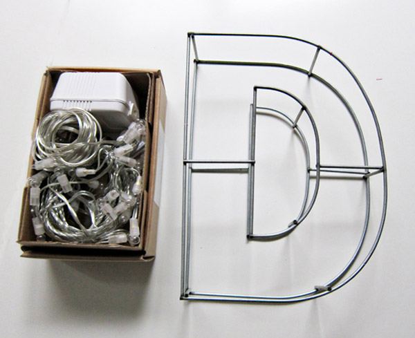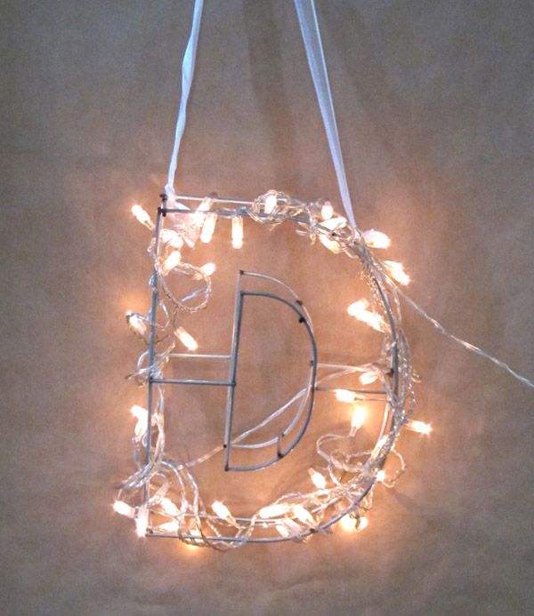 En este caso lo único que hay que hacer es enrollar la cadena de luces alrededor de la letra y asegurarla con alambre.