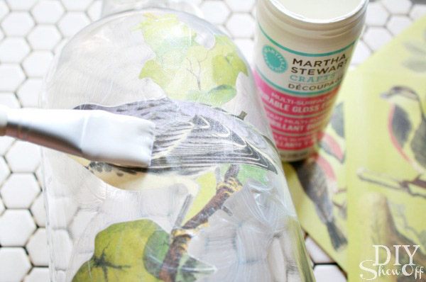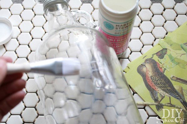 3. Con la ayuda del pincel pasar el contenido del bote de Decoupage sobre el cristal.