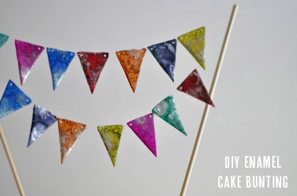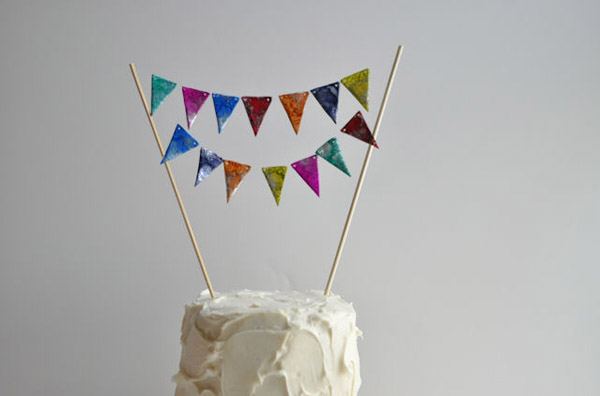 8. Atar los dos extremos de las guirnaldas a los dos palitos de bambú y colocar sobre el pastel.