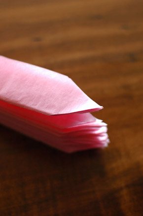 Cortar las puntas del papel de seda en forma de triángulo, también podéis crear una punta redondeada, si lo preferís.
