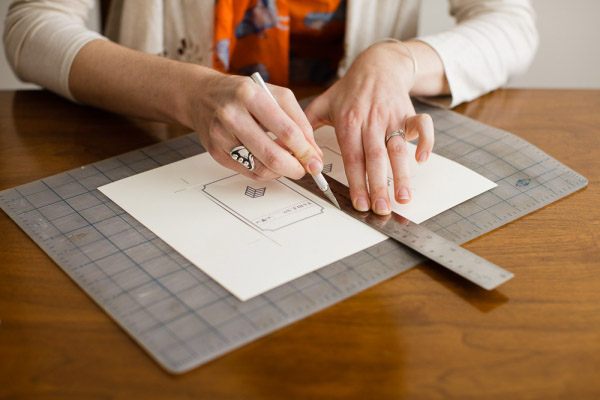 2. Apoyadas en la almohadilla, cortar las tarjetas con ayuda de una regla y un cutter.