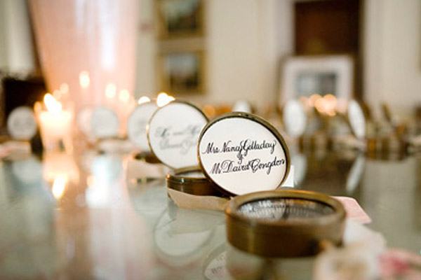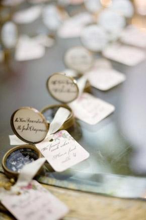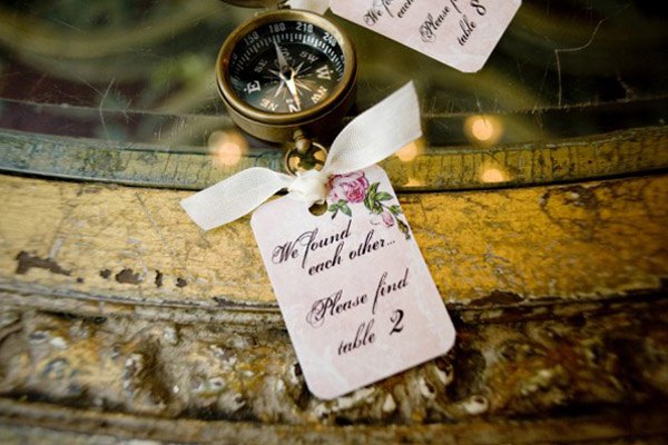 Es lo primero en lo que pensamos si nos encontramos perdidos en algún lugar desconocido… ‘¡Qué bien os vendría una brújula para encontrar el camino!’. En las bodas sucede lo mismo, cuando entramos al salón donde se celebrará el almuerzo o la cena todos buscamos los típicos caballetes o paneles donde está dispuesta la distribución de las mesas para saber dónde nos vamos a sentar, quién nos ha tocado en la silla de al lado y si estaremos o no cerca de la mesa de los novios. Una idea original y divertida es hacer el sitting de mesas con ayuda de unas brújulas. Es tan fácil como colgar de ellas unas tarjetitas con el nombre de cada uno de los invitados y el número de mesa que van a ocupar. Además de divertido es muy práctico y los asistentes a vuestra boda pueden llevárselo de recuerdo, incluso podéis grabar en la parte inferior de la brújula vuestras iniciales con la fecha de la boda. A más de uno le será de gran ayuda si algún día ‘pierde el norte’ 😉