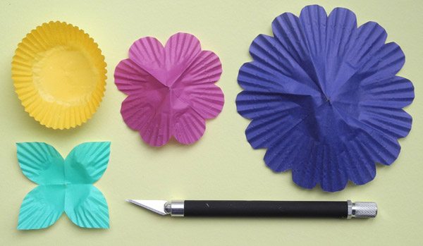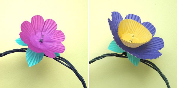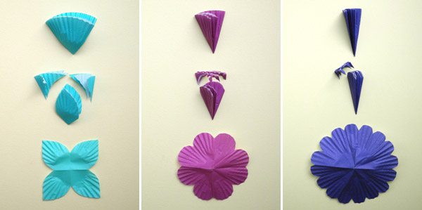 Ya es hora de ir poniendo un poquito de color a este frío invierno, ¿no creéis? Ayer por la tarde en Barcelona hacía una temperatura estupenda y dando un pequeño paseo pude comprobar que muchos árboles de casas vecinas ya estaban en flor, así que me dio por buscar un tutorial que tuviese a las flores como protagonistas y encontré este que seguro que os encantará porque además es facilísimo de hacer. Se trata de confeccionar unas guirnaldas de luces para el momento del baile o para decorar cualquier rincón de vuestra boda, con ayuda de moldes de papel de magdalenas de distintos colores. Si lo preferís podéis utilizar un único color o incluso emplear el molde tradicional de color blanco, eso ya lo dejo a vuestro gusto.
