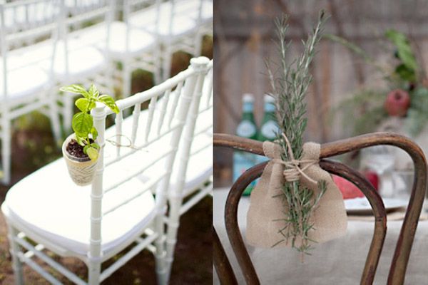 Estos días que ha estado el tiempo algo lluvioso, cada vez que salía al pequeño jardín que tengo en casa cerraba los ojos y respiraba profundamente… ¡me encanta el olor a hierba mojada! Esa sensación es la que me ha inspirado el post de hoy, donde predomina la decoración a base de plantas aromáticas, hierba, hojas o pequeños arbustos. No hay nada como lo natural, es un claro reflejo de mi filosofía, ya lo sabéis ‘menos es más’. A veces pensamos que cuanto más decoremos un espacio o más detalles o cosas le pongamos, más bonito se va a ver y más va a llamar la atención, pero creo sinceramente que es una actitud errónea porque nada llama más la atención que la sencillez que transmite un elemento natural. En las fotografías veréis diferentes maneras de usarlo, como centro de mesa, bouquet floral, adorno de sillas o decoración general. El bien más preciado que tenemos es el que proviene de la tierra, no lo olvidéis y transmitidlo siempre que tengáis oportunidad, vuestra boda puede ser una ocasión única para hacerlo.