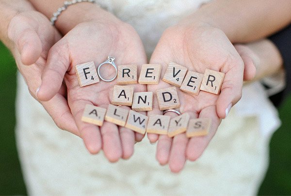 Quién no ha jugado alguna vez al Scrabble? La verdad es que quien más quien menos conoce este famoso juego de mesa que se caracteriza por ir formando palabras sobre un tablero. Hay auténticos scrabblemaniáticos pero también hay muchos a los que más que el juego lo que les gusta son las piezas y todas las ideas que se pueden poner en práctica utilizándolas por ejemplo en una boda. La inspiración de hoy se basa precisamente en eso en utilizar las pequeñas piezas de madera para multitud de aplicaciones. Os pueden servir para el seating de la boda, colocando frente a cada plato el nombre de la persona correspondiente, también para que vuestros invitados puedan dejaros mensajes en una pizarra con las distintas letras pegando un imán en su parte posterior, para la numeración de las mesas o hasta para decorar el ramo de novia. La Scrabblemanía también ha llegado al mundo de los complementos y de la decoración, donde podéis encontrar gemelos para el novio o sus testigos o artículos decorativos como cojines para destacar un rincón especial de la boda o de vuestro propio hogar. La verdad es que el Scrabble puede dar mucho juego también a la hora de hacer el reportaje fotográfico de la boda, hay instantáneas súper originales tomadas con los novios o con las alianzas, incluso para el Save the Date. Y si todavía no os habéis decidido a dar el paso y no os salen las palabras, siempre podéis pedírselo con fichas de Scrabble.