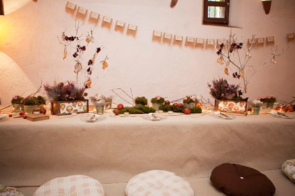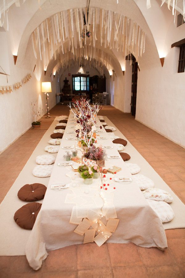 Cuando me inicié en esto de los blogs de bodas nunca imaginé que llegaría a conocer a tanta gente especial, personas que disfrutan haciendo felices a otras personas que a su vez disfrutan compartiendo el resultado de ese disfrute con más personas, no sé si me explico. Mi marido siempre me dice que soy afortunada por trabajar en un campo donde las ilusiones siempre están a flor de piel y eso, doy fe de que se transmite. Cuando un grupo de bloggers recibimos la invitación de Úrsula de Nice Weddings y Tanit de Paper Project, poco podíamos imaginar porque prefirieron no dar detalles, quisieron sorprendernos desde el principio y la verdad es que lo consiguieron. La cita fue en la Masía Ribas, situada en la localidad barcelonesa de Gavà, un lugar espectacular con unos jardines impresionantes, unos árboles centenarios y una historia familiar verdaderamente entrañable que Elisabet Raventós se encarga de transmitir a quien la visita. Fue una de esas tardes de ‘Ohhhh!’, sí, creo que fue la palabra más pronunciada por todas las asistentes. Una tarde donde pudimos reencontrarnos con bloggers ya amigas, conocer otras nuevas y, sobre todo, disfrutar de todo lo que con tanto mimo y dedicación nos habían preparado Úrsula y Tanit. Yo que, como ya sabéis, me he dedicado al mundo de los eventos, sé lo complicado que es montar algo con el nivel de detalle que encontramos y las horas que se necesitan no sólo para el montaje sino para todo el previo de la organización, el diseño, coordinación, logística, etc. ¡Desde aquí un 10 para las dos! Pudimos disfrutar de un taller de washi tape donde Neus, de All Washi Tape, nos enseñó a decorar unas cajitas monísimas con dos mini-libretas y un juego de cubiertos de madera; de una suculenta merienda servida por Síbaris, uno de mis caterings preferidos de mi época de eventos y donde precisamente conocí a Eli de Masía Ribas; de unos sorteos donde todas ganamos porque había regalos para todas las asistentes gracias a la colaboración de un montón de proveedores que quisieron estar presentes esa tarde; también hubo tiempo para echarnos unas risas en el photocall vintage o junto a la mesa de dulces de Chocoas y como cierre tomarnos unas nubes de algodón con chocolate caliente junto a un agradable fuego. Aunque creo que lo mejor para que os podáis hacer una idea es que veáis vosotras mismas todas las fotos (me ha costado horrores decidirme sólo por una treintena) y os recomiendo que si os casáis en otoño cojáis ideas de toda la decoración especialmente creada por Mireia Abras, yo si me volviera a casar no dudaría en hacerlo en esta época del año.