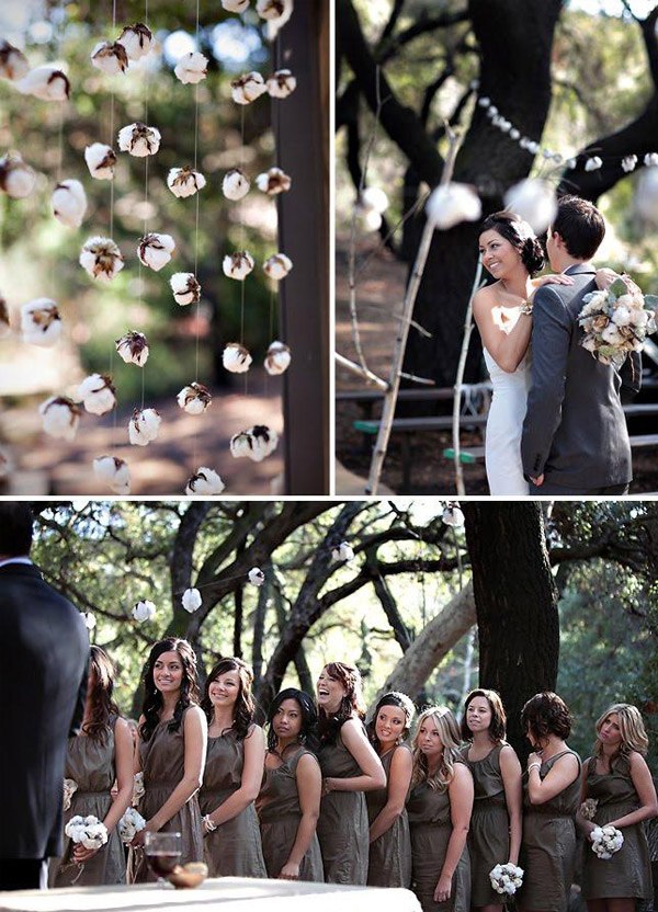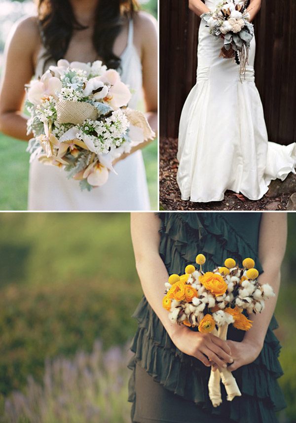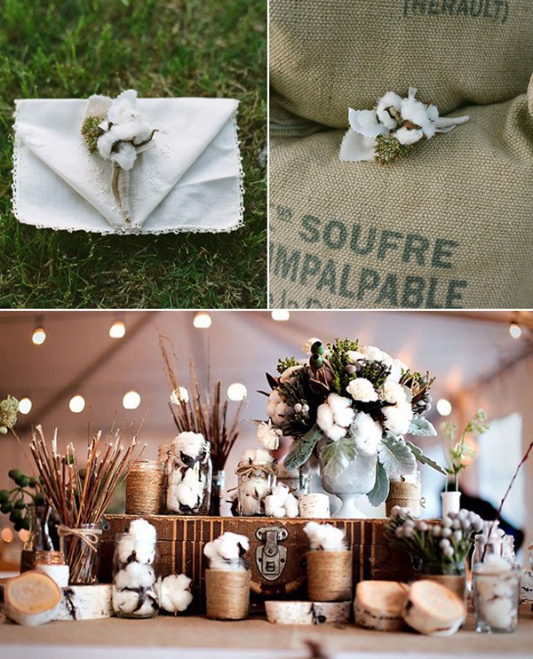 Aunque todavía estemos en otoño, se van aproximando ya las bodas de invierno, a mí particularmente ya sabéis que me encantan así que ya he ido buscando cositas por la red para inspiraros a la hora de planear y organizar vuestra boda. Hoy os os quiero hablar de un elemento decorativo que me gusta mucho y que funciona a la perfección en cualquier tipo de boda, aunque debido a su aspecto natural quizás combina mejor en bodas de tipo rústico u orgánico, se trata de la flor del algodón. Podéis combinarlo con flores y crear un bouquet original, usarlo de alfiler de solapa para el novio y los testigos, decorar el pastel de bodas e incluso crear un hilo decorativo en toda la ceremonia, empezando por las invitaciones y acabando por la decoración general del baile. Es el encanto que tienen las flores humildes, un claro ejemplo de cómo algo muy simple puede convertirse inesperadamente en bello si se le sabe sacar partido. Os recomiendo estas pequeñas y esponjosas nubes de algodón si queréis algo distinto en vuestra boda, seguro que os sorprenderá y sorprenderéis…