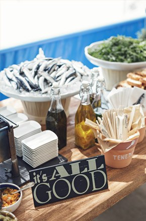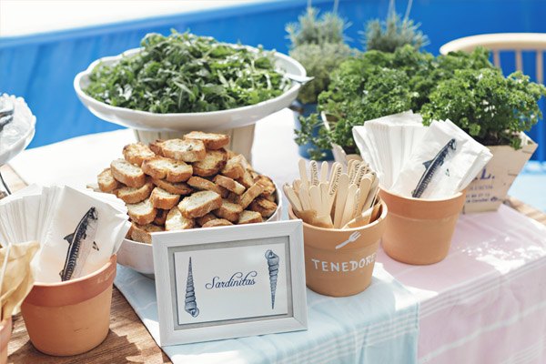 Como la mayoría ya sabéis, la semana pasada tuvo lugar la Barcelona Bridal Week, la pasarela de Novias por excelencia en la Ciudad Condal. Pero este año el pistoletazo de salida se adelantó al mediodía con la presentación oficial del magazine Tendencias de Bodas en Barcelona. La excusa para reunirnos fue la celebración de un brunch marinero y el espacio elegido fue el Chiringuito Las Sardinitas donde pudimos disfrutar nuevamente del excelente trato de todo el equipo de Moncho’s y de un catering diseñado especialmente para la ocasión donde los protagonistas fueron, como no podía ser de otra manera, las sardinas y el perejil, entre otras muchas exquisiteces. De Tendencias de Bodas no sé qué os puedo decir que no sepáis pero la verdad es que es el magazine on-line número uno en nuestro país, no sólo por ser pionero en su sector sino también por su cuidada presentación, su rigurosa selección de contenidos y editoriales de moda y por la profesionalidad de sus colaboradores, entre los que se encuentran periodistas, expertos en tendencias y bloggers de moda y de bodas, todos ellos dirigidos bajo la batuta de Keyla, la directora y alma de Tendencias de Bodas. Para el brunch Keyla contó con la ayuda de un trío de ases, Laura de Fueron Felices que todo lo que toca se convierte en bonitismo, Marina de Oh! Fleurs cuya sensibilidad para las flores respira primavera y Paramenta Studio que puso el toque marinero a toda la cartelería e invitaciones. Fue una jornada perfecta, con el mar de fondo, muchas risas y buena compañía. El reencuentro de un montón de amigos profesionales y locos por las bodas y por lo que este mundillo representa, una velada que se alargó hasta bien entrada la tarde y que sin duda fue la mejor manera de hacer del martes un domingo y empezar una semana de locura que intentaré iros resumiendo en distintos posts la próxima semana. Y no os preocupéis porque el próximo otoño habrá también presentación en Madrid!