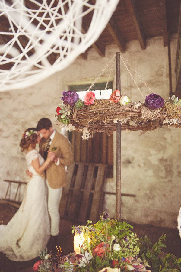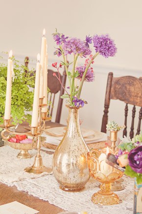 Como ya sabéis, a principios de mayo asistimos, un año más, a la puesta en escena de las tendencias en vestidos de novia y fiesta que se llevarán la próxima temporada. Quizás lo que más llamó mi atención de esta nueva edición de la Barcelona Bridal Week fue la ausencia de una única línea estética ya que la mayoría de diseñadores se decantaron por una tendencia a la diversidad de estilos, muchos de ellos con algún ligero punto en común pero siempre pensando en novias diferentes, con caracteres y gustos de lo más diverso. Cabe destacar que en prácticamente todos los desfiles se percibió también una vuelta al romanticismo, a la novia tradicional, muy femenina, sensual y con un gusto exquisito por los detalles. Por eso hoy he elegido una temática de inspiración romántica para la decoración de bodas en las que predomine el gusto por lo clásico pero siempre desde un punto de vista actual con reminiscencias a un pasado glorioso salpicado por lo vintage. Con detalles de metal envejecido, cubiertos de plata, jarrones de cristal, candelabros y muebles restaurados de estilo afrancesado, salpicados por algún detalle handmade. Las imágenes muestran la recreación de un ambiente que evoca la campiña inglesa, donde las aplicaciones y las coronas de flores adquieren protagonismo convirtiéndose en la esencia de lo romántico. Detalles también en el estilismo nupcial, como el cinturón del vestido de la novia, adornado por una llave antigua o el parasol de tejido calado que, cubriendo el rostro de los enamorados hace más romántica la escena, si cabe.
