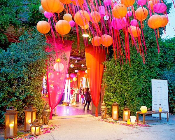 Bueno, la verdad es que han pasado ya unos cuantos días desde que tuvo lugar en Barcelona una nueva edición de The Wedding Fashion Night cuyo lema este año –Exotic Glam– evocaba lugares de ensueño, aromas orientales y paraísos perdidos. El escenario, una antigua nave industrial en Palo Alto, no podía estar mejor elegido. Los invitados eran recibidos por dos nativas hindúes bajo una lluvia de pétalos y un cielo de lámparas de papel les daba la bienvenida, el mismo cielo que les acogería en el interior. Desde mi primera visita a este showroom nupcial de referencia, hace ya algo más de dos años, uno de mis sueños era poder disfrutar algún día de esta maravillosa experiencia pero viviéndola desde dentro, soñaba con ser una de esas empresas tan especiales que cada año iba descubriendo y ya sabéis que a veces los sueños se hacen realidad y hoy puedo deciros que el mío se ha cumplido con creces después de haber formado parte de esta edición. Si no he publicado antes este post ha sido porque durante dos días no pude dejar de saludar, hablar, reír y compartir con todos los que os pasasteis a ver nuestras cositas de UBOshop y a saludarnos personalmente y sí, claro que me llevé la cámara de fotos, pero tal como la llevé la traje porque salvo unas pocas fotos del montaje no pude volver a hacer uso de ella, me fue imposible, no me dejasteis un minuto libre y yo, por supuesto, encantada de la vida. Sara, de Enrrolladas, con la que compartí espacio entre otras muchas cosas, puede dar fe de ello porque a ella le sucedió prácticamente lo mismo. El resultado ya lo sabéis, una afonía de varios días pero mucha felicidad en el cuerpo y en el alma por haberos puesto cara a muchos de vosotros y por todas vuestras palabras tan positivas y bonitas sobre UBO. No me quiero extender mucho porque las fotografías hablan por sí solas y como había cientos y me gustaban todas me ha sido muy difícil seleccionar sólo unas cuantas, así que hoy el post viene cargado de imágenes. Veréis que toda la ambientación, como ya os he dicho, respiraba exotismo y en el jardín y todo el espacio exterior se colocó una haima impresionante a modo de chill out donde poder descansar, tomar una copa y charlar animadamente. Música en directo, bailarinas de danza del vientre y, cómo no, nuestra caravana vintage de crêpes, que hizo las delicias de los asistentes que no dejaron de pasar una y otra vez por nuestro mostrador. Me enamoré, una vez más, de las coronas de flores de Hip & Love y de los impresionantes vestidos de aire vintage de l’Arca. Por fin pude conocer personalmente a Maca, que desde ya se ha convertido en amiga y a Carmina, una persona encantadora, atenta y siempre amable. Os dejo el listado de todos los que, de una forma u otra, colaboraron y formaron parte de esta edición y con los que tuve la suerte de poder compartirla: Nuovi Piatti, Say Cute, Bodyng, Chocolate y Aguamarina, Hip & Love, L’Arca, PlanBe, Moah destinos exclusives, La Roureda, Moncho’s, La Floreria, La Esencia de los Sentidos, Enrolladas, Basilico Studio, Atelier Sucreme, Actuality Carpas, Wide Marketing, By Daniela, COCO-MAT, Home Deco, The Grokstore, Art Social Bcn, NH Hoteles, La Agencia Sensorial, Anna de Codorniu, Banco Mediolanum, Vichy Catalán, Toté Vignau, Estrella Damm, Cerabella y Una Boda Original.