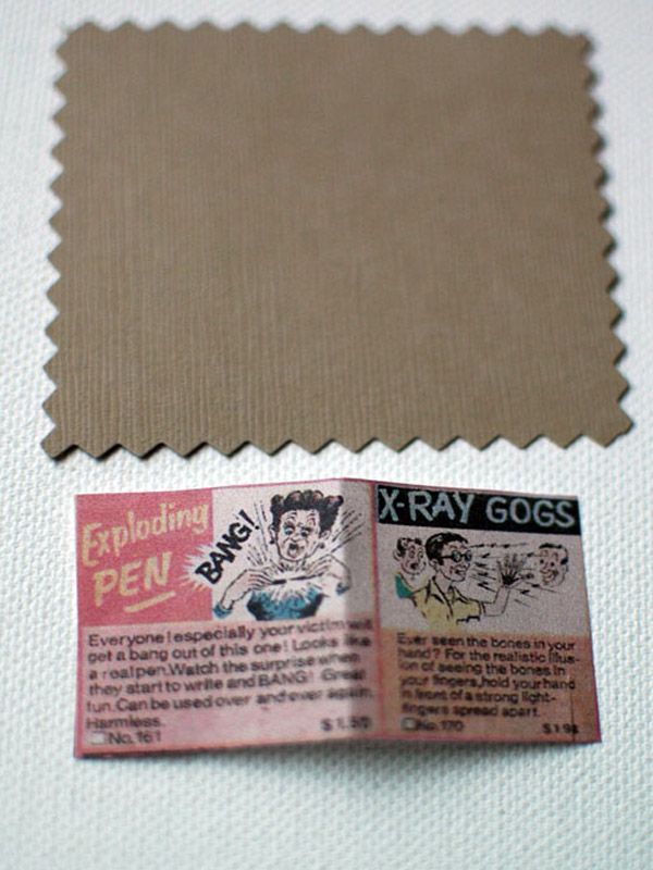 4.- Cortar la cartulina con tijeras dentadas para hacer la etiqueta de agradecimiento y recortar un trozo de papel de cómic para pegar sobre la tarjeta.