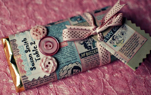 7.- Colocar las barritas de chocolate sobre una mesa a la vista de los invitados para que puedan localizar con facilidad sus nombres y números de mesa.