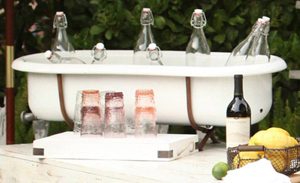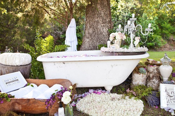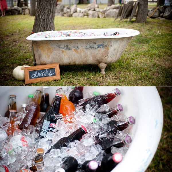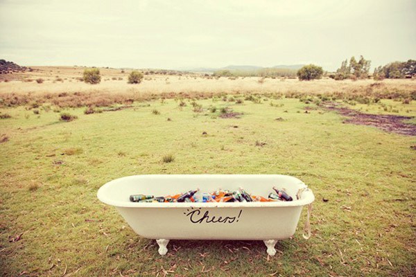 Desde siempre me han gustado las bañeras antiguas, las clásicas de porcelana blanca con cuatro patas y formas redondeadas. Las pondría por todas partes, en la entrada de casa a modo de bienvenida junto a unos marcos sin láminas, como parterre con variedad de plantas y flores decorando el jardín, de improvisada nevera con refrescos y cubitos de hielo en su interior y, por supuesto, como elemento fundamental y protagonista de mi cuarto de baño (siempre me he imaginado rodeada de sales aromáticas y velitas dentro de una de ellas). Ahora, con la exaltación de todo lo retro y de la decoración vintage, también se han puesto de moda en las bodas. La verdad es que es una excusa perfecta para conseguir una de estas maravillas. Su uso más frecuente es emplearla como barra o nevera de bebidas frías pero también podéis incorporarla como decoración o atrezzo e incluso como ‘gag’ divertido o romántico en vuestro reportaje fotográfico. Probad a meteros junto a vuestras damas de honor o testigos con vuestras mejores galas y todo el sentido del humor, seguro que os divertiréis muchísimo poniendo mil y una posturas. La verdad es que si lo pensáis bien es un elemento precioso, útil y original que una vez acabada la boda podéis reutilizar como queráis. Hay incluso quien va más allá y ha llegado a convertir una de estas bañeras en improvisados sillones de diseño, es tan fácil como partirla por la mitad, ponerle dos patas más y un cómodo cojín y en un plis-plas ya tienes montada una zona de chill-out. Alguien se atreve?