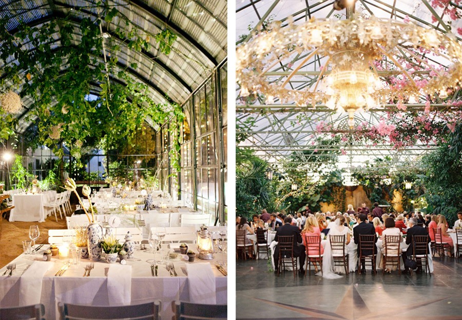Elegir el espacio donde celebrar una boda es una de las primeras cosas que hay que decidir si tenéis pensado casaros, es más importante incluso que la elección de la fecha. No sería la primera vez que unos novios cambian el día de su enlace porque el espacio elegido no tiene disponibilidad, de hecho a mí me sucedió. Y aunque antes quizás era un aspecto que no preocupaba demasiado, hoy día es realmente difícil decidirse por uno porque las opciones cada vez son más variadas y a cual más impresionante. Hay masías rodeadas de bosque, hoteles junto al mar, naves industriales, ermitas de cuento, calas perdidas entre rocas… espacios realmente singulares, muchos de ellos naturales, que ofrecen un entorno idílico para celebrar una boda única y especial. Particularmente soy de la opinión de que cuantas más posibilidades estéticas ofrezca un espacio, menos tendréis que invertir en decoración y más auténtica quedará vuestra boda. Pero muchas veces no es posible elegir un entorno natural o un espacio al aire libre, sobre todo cuando hablamos de una boda en ciudad o en una determinada época del año, factores que hacen que las posibilidades se reduzcan. Pero opciones siempre hay, sólo hay que tener un poquito de ayuda o imaginación para encontrarlas. En el post de hoy os propongo celebrar vuestra boda en el interior de un invernadero, los hay realmente espectaculares, con una estética entre industrial y afrancesada y un interior natural rodeado de distintas especies florales y botánicas. Si os gustan los entornos naturales es el espacio ideal pero hay un aspecto que debéis tener en cuenta y es la climatización ya que en función de la época del año podéis pasar calor por lo que es preferible elegirlo para bodas de principios de primavera u otoño. Sus posibilidades estéticas, tanto en interior como en exterior, son perfectas también para las fotos, los hay con medias paredes de piedra o ladrillo y techos con vigas de madera, que los hacen perfectos para bodas con un cierto aire industrial, aunque la mayoría suelen tener paredes con cuarterones de cristal y algunos incluso con impresionantes cúpulas abovedadas que les dan un aspecto de majestuosidad ideales para bodas más clásicas. La verdad es que me quedaría con cualquier opción porque los invernaderos me gustan en todas sus variables, incluso si están vacíos o medio abandonados, cuando su aspecto decadente les da ese aire bohemio tan particular.