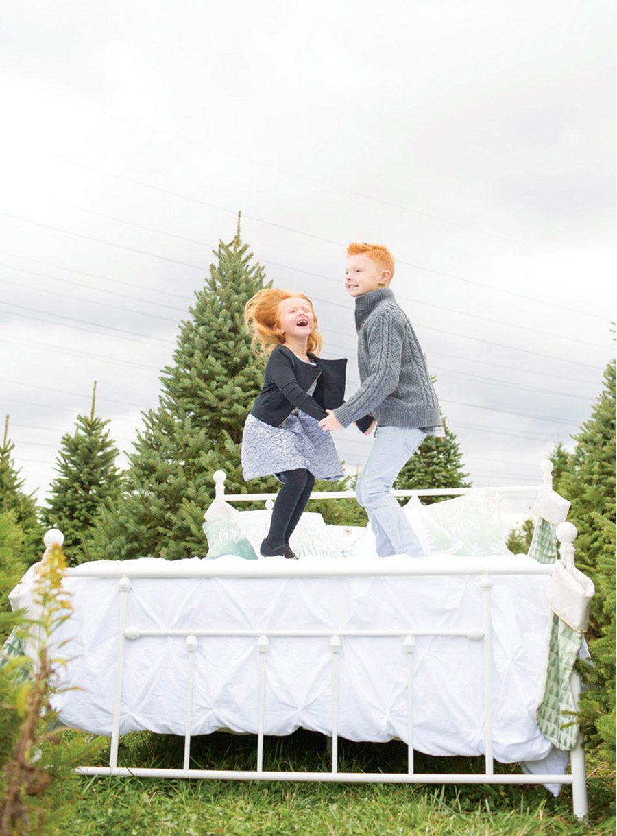 El set se ha decorado con guirnaldas naturales adornadas con flores y ramas de abeto con piñas y, además del chocolate caliente, se han colocado tarritos de cristal con malvaviscos de vainilla casera, coco y chocolate blanco, galletas con formas navideñas o buñuelos pero podéis añadir lo que más os guste, por suerte el chocolate es una bebida que pega con casi todo. También podéis ambientar la decoración con ayuda de un abeto de navidad, colocando paquetes divertidos en su base con los regalitos de la boda para los más pequeños. Particularmente me ha gustado mucho la idea de los taburetes de pelo blanco para que los niños puedan sentarse pero, sin duda, la idea más divertida ha sido la de colocar una cama enorme con un colchón bien mullido para poder hacer realidad el sueño de todo niño (y también de algún adulto), el poder saltar sobre la cama como si no hubiera un mañana sin temor a que nadie te castigue. Sencillamente genial!