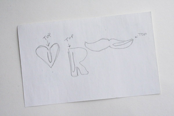 Para empezar debes decidir la forma que quieres que tenga tu clip. En este caso, la propuesta es hacer las iniciales de los novios. Primero hay que dibujarlas en un papel para tener una referencia visual del clip. Debes decidir dónde estará el ‘top’ del clip y dibujarlo también.
