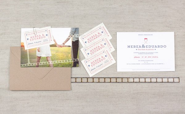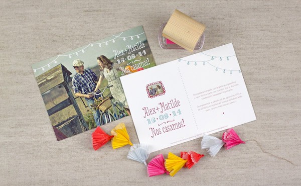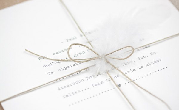 Hay trabajos de esos que cuando los ves sientes como un flechazo, te enamoras y no dejas de pensar en ellos y hay personas con las que nos sucede lo mismo y cuando se unen las dos cosas entonces ya es la bomba. Hoy os quiero presentar la nueva colección de invitaciones de boda de Project Party Studio, a cual más bonita y especial. He elegido las que a mí personalmente más me gustan y creo que pueden encajar con el perfil de novios que nos visitáis, pero si vais a su web podréis ver muchos más modelos o incluso pedirles que os los personalicen, son unos diseñadores todoterreno para los que no existe la palabra imposible. No importa el tipo de novios que seáis porque ellos se adaptan a todos los gustos y personalidades, tienen un perfil muy camaleónico pero con un estilo propio muy característico, cuidando todos los detalles al máximo, como podréis ver en su nueva colección de invitaciones. A Andrea la conocí en nuestro primer encuentro ‘formal’ de wedding bloggers, durante un fin de semana inolvidable en el Empordà en la casa familiar de Marina de Bodas de Cuento y a partir de ahí y después de pasarnos horas enteras sin parar de hablar y de reír, empezó a fraguarse entre todas nosotras una gran amistad 2.0 que intentamos combinar siempre que podemos con pequeños encuentros blogueros. A Dani, la otra mitad de PPStudio, lo conocí más tarde pero es también de esas personas con las que te sientes a gusto desde el principio y al lado de Andrea forman un tándem perfecto. Veréis que cada invitación sigue una línea concreta tanto de temática como de diseño y todas van acompañadas de un detalle que las hace especiales, las hay más rústicas como el modelo Flores, otras que recuerdan las verbenas de verano como las de Farolillos, invitaciones pensadas para novios cinéfilos como el modelo Cine o para viajeros empedernidos como el diseño del Boarding Pass, pero también las hay más clásicas y con un toque sofisticado como el modelo Pluma. Además, si las acompañáis de un sello personalizado con vuestros nombres y la fecha del enlace, el resultado será redondo. Os animáis?